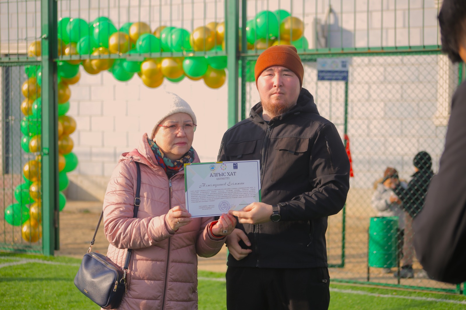 «Бұрын балалар қара топыраққа тас қойып футбол ойнайтын. Енді олар кинодағыдай сапалы алаңда ойнап жүр. Алаңға волейбол ойнауға да мүмкіндік бар. Жиырмаға жуық ауыл жастары бірігіп, оны 5 айда салып шықтық. Бұл жоба бізді бірлікке, ұйымшылдыққа, өз күшімізге сенуге үйретті», — дейді Берекет.