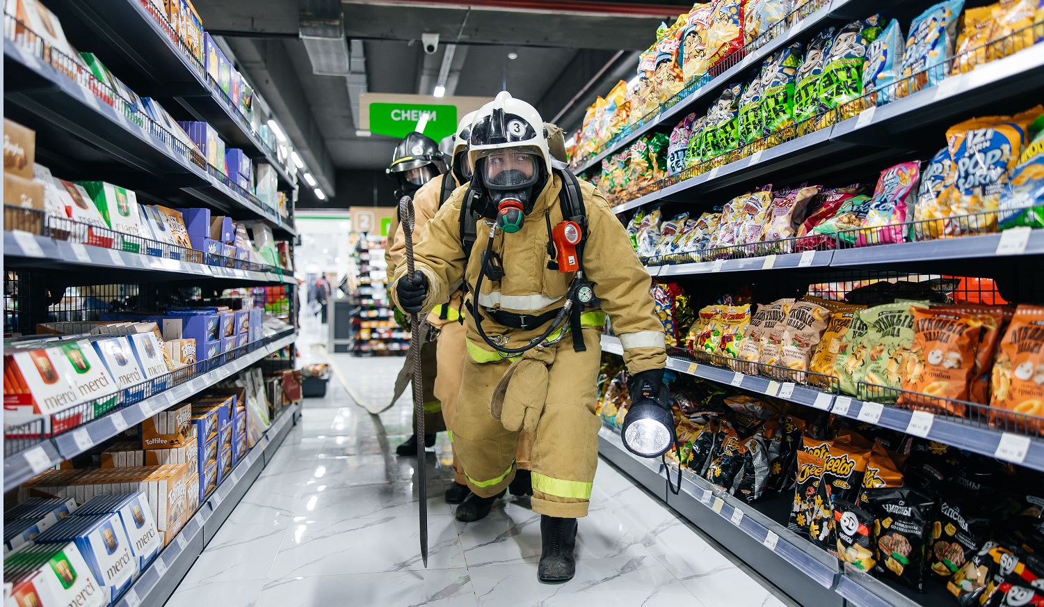 Өрт-тактикалық жаттығу барысында ғимарат ішінде орналасқан шағын маркет қоймасында қара қою түтін шығып жатқандығы және өрттің басқа алаңға таралу қаупі басым екендігі туралы хабарлама түседі. Қалалық өрт сөндіру бөлімдері дереу оқиға орнына жетіп, түтін бар екенін анықтайды. Дереу келушілер мен сатушыларды эвакуациялау жұмыстары жүргізіліп, өрт сөндірушілердің жедел әрекетімен өрт сөндіріліп, сауда орындарындағы адамдар толық құтқарылады.