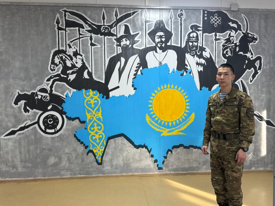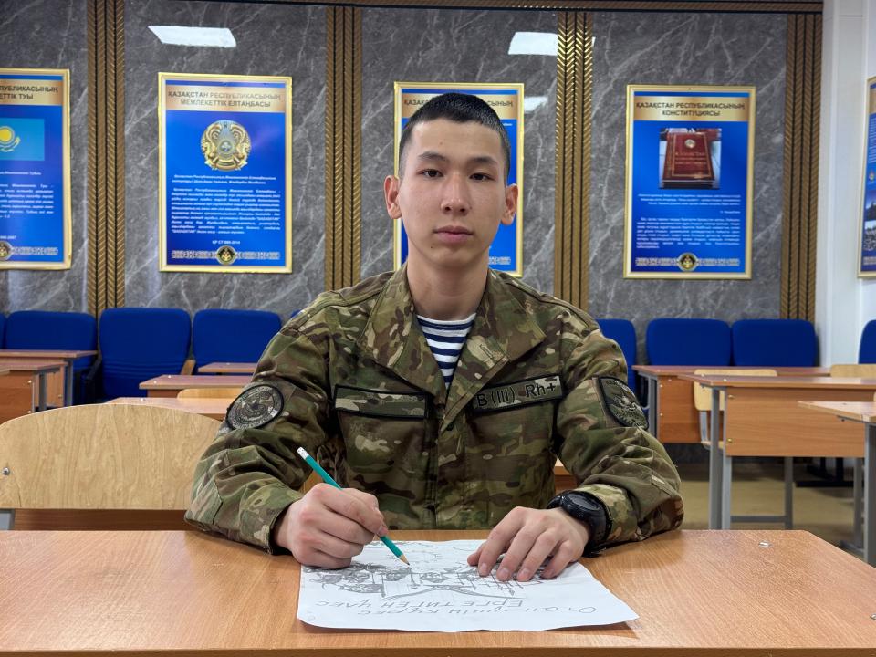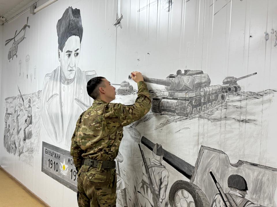 Теңіз жаяу әскерінің матросы Қазақстан тарихының батырлары туралы картиналар жасауда, деп хабарлайды AtyrauPress тілшісі.