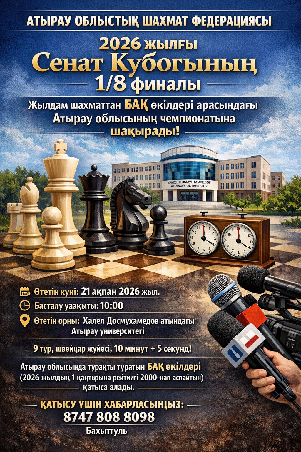 Атырау облыстық шахмат федерациясы бұл шара өңірдегі журналистер қауымдастығы үшін спорттық бәсеке ғана емес, кәсіби ортадағы достық байланысты нығайтатын маңызды алаң болатынына сенім білдіреді.