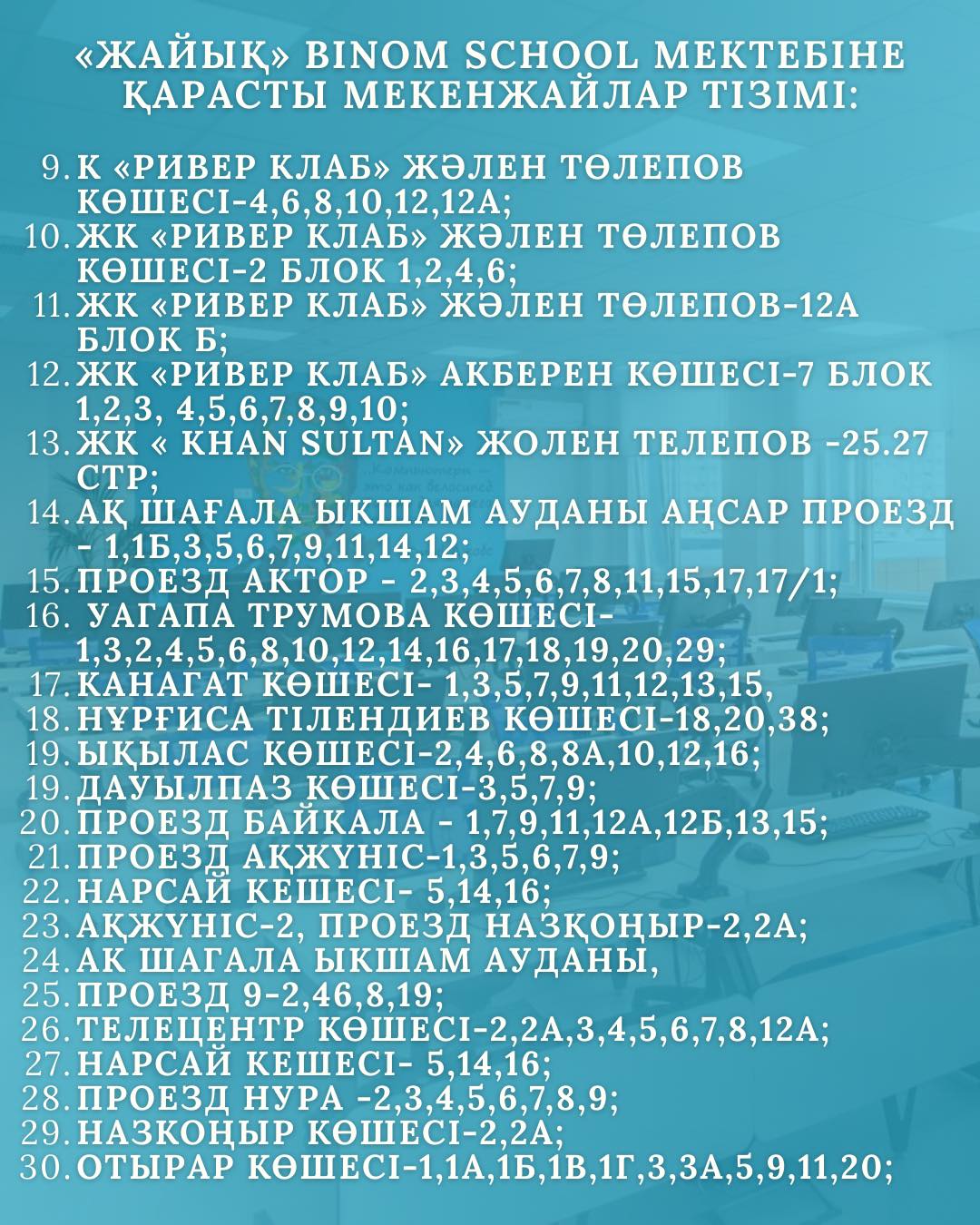 Ранее руководитель городского управления образования Атырау Айнагуль Дюсекенова сообщила, что все учащиеся школы №30 автоматически включены в список перевода в BINOM. Однако окончательное решение остаётся за родителями.