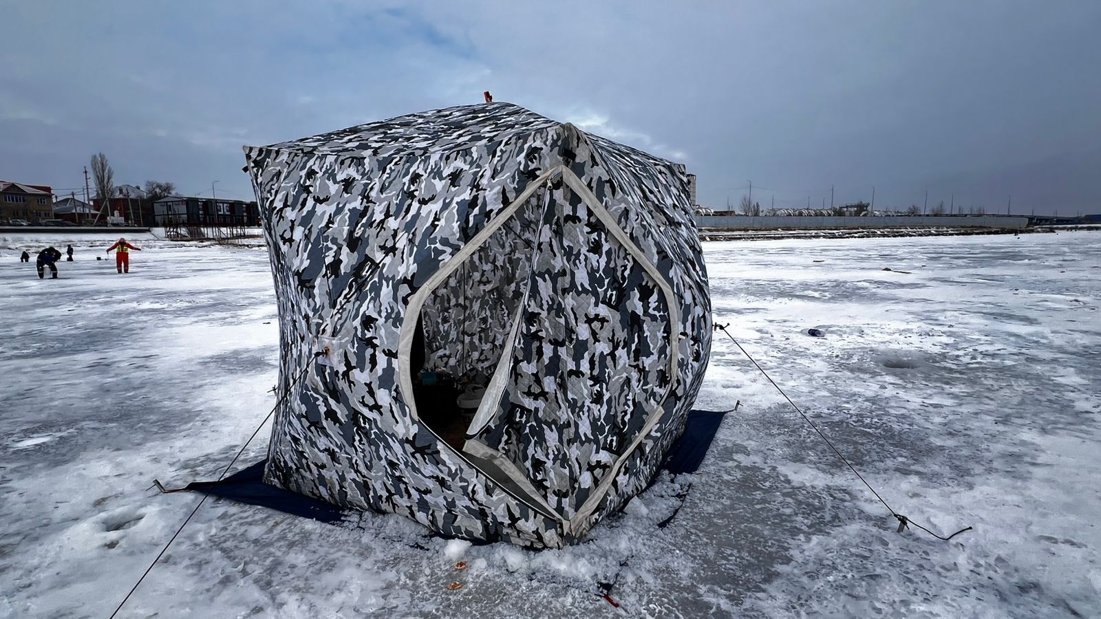 С первыми лучами солнца центральная часть города оживает. На белой глади появляются разноцветные палатки, слышны негромкие разговоры и смех. Через каждые несколько метров - свежие лунки и коловороты. Рыбаки с раскрасневшимися от холода лицами переговариваются, обсуждают погоду, новости и, конечно, клев.