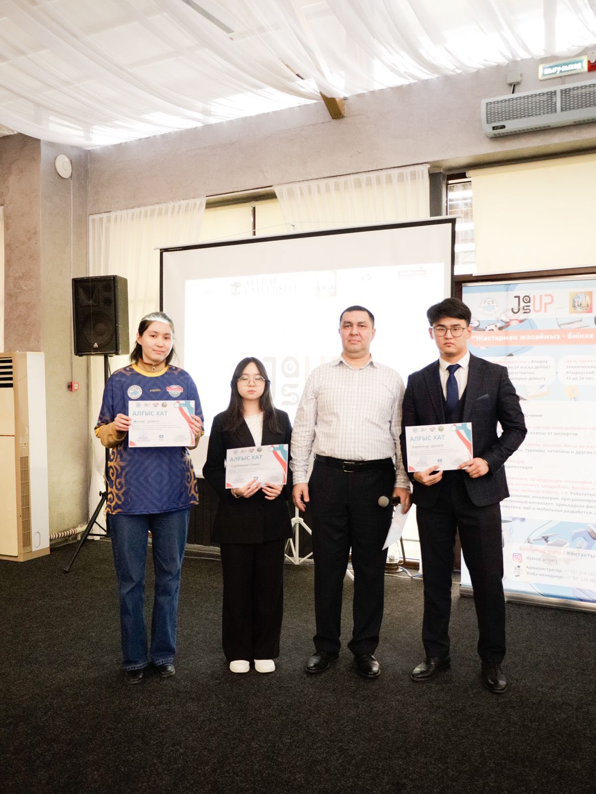 На этапе защиты 45 учащихся и студентов в возрасте от 13 до 24 лет из Атырау и Жылыоя представили 25 прикладных инженерных и IT-проектов, направленных на решение социальных, экологических и технологических проблем региона.
