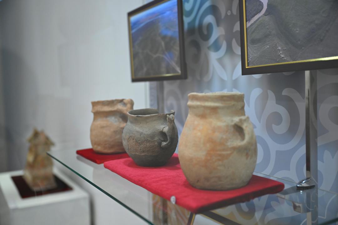 Экспозиция впервые представила широкой общественности ценные артефакты из дюнного захоронения эпохи энеолита, обнаруженного в комплексе Тайсойган Атырауской области.