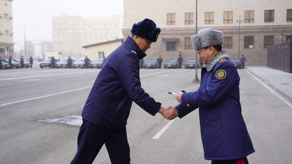В рамках мероприятия молодым офицерам были присвоены первые специальные звания. Кроме того, Ерназар Сдыхов за безупречное исполнение служебных обязанностей награжден грамотой Министерства внутренних дел.